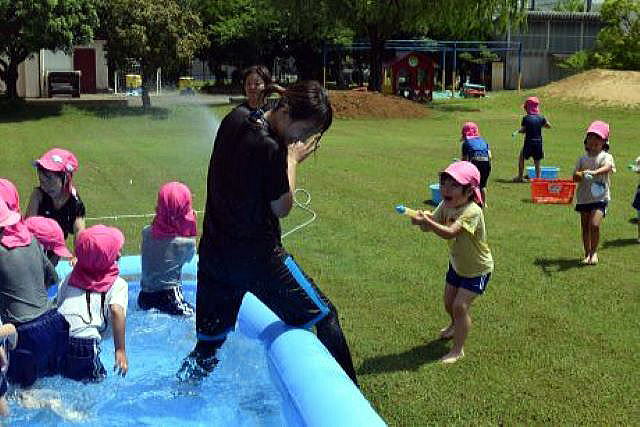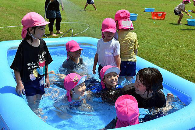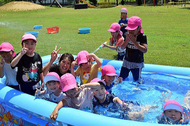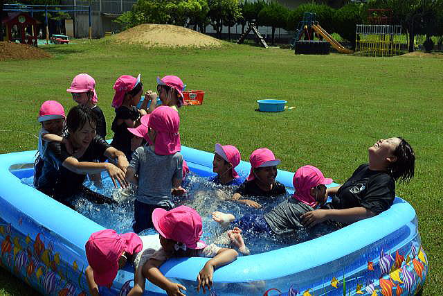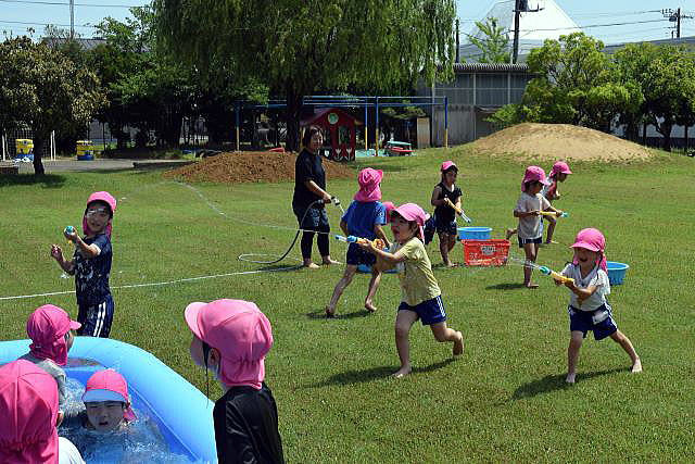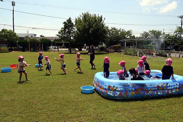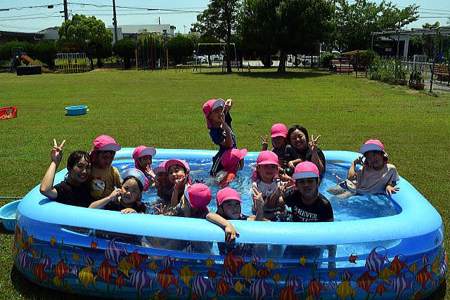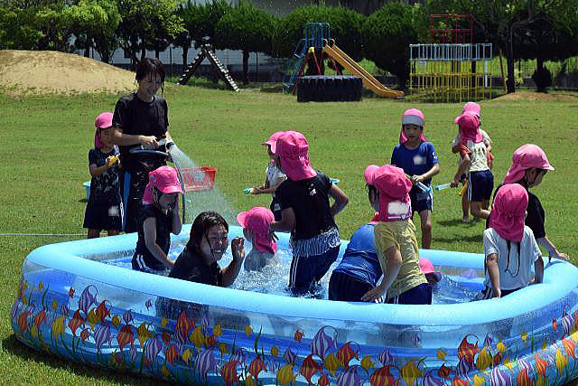 暑い日が続き、待ちに待った水遊びです。