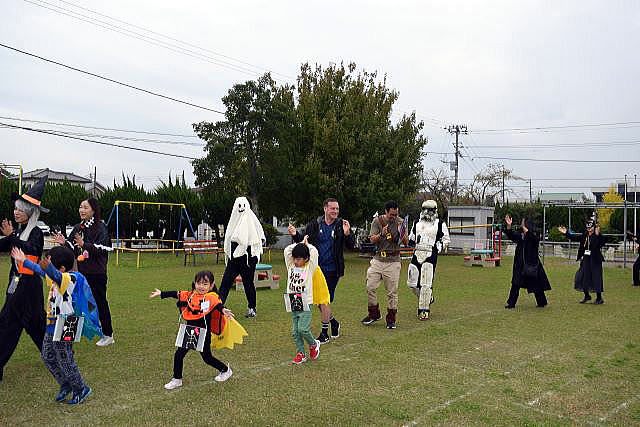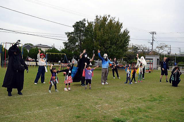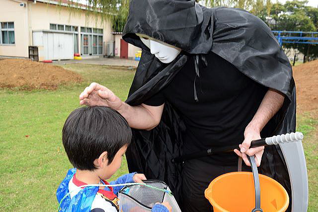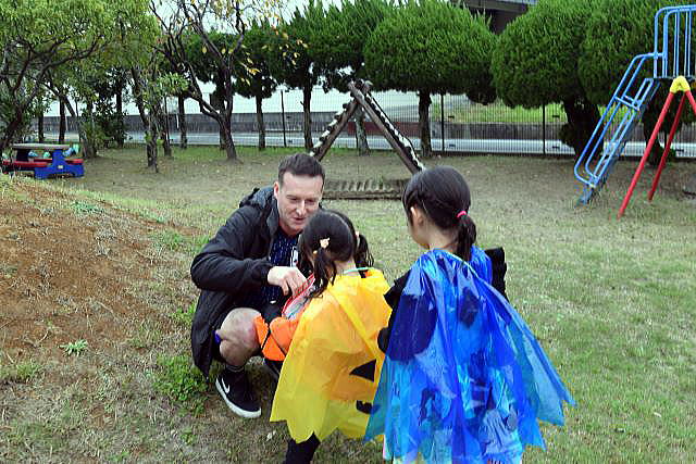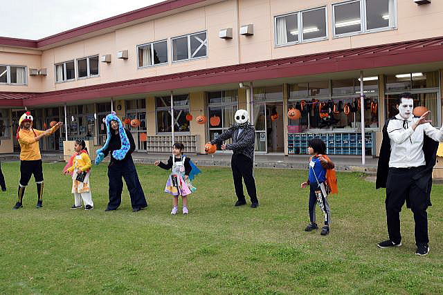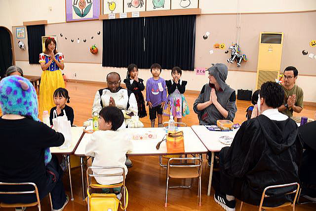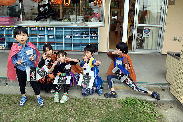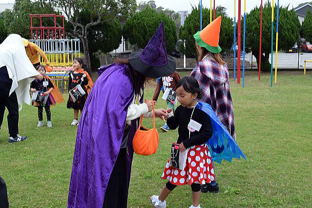 5歳児にとってALTの先生との交流は、「英語ができる」よりも 「世界への興味が育つ」「コミュニケーションの楽しさを知る」ことが最大の成果。 ランチパーティーでは、初めて会ったALTの先生が、両隣りに座っても 臆することなく、笑顔で話す姿が見られ、嬉しく、驚きでもありました。 逞しい我が中川幼稚園の14人の子ども達! ご参加、ご協力いただいた皆様のお陰で、とっても賑やかに、 そして大成功のハロウィンパーティーとなりました。 ありがとうございました。 |