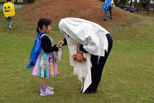 次はトリックオアトリート!今度は本物のキャンディだ! コミュニケーション力と勇気が試されます。 「トリックオアトリート!」と多く言えば言えるほど、よりたくさんキャンディをゲット!!! ※キャンディバッグに注目。可愛いぃ♡ |