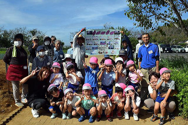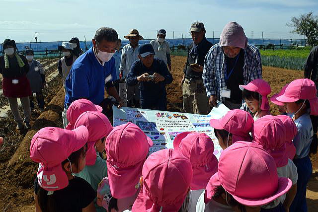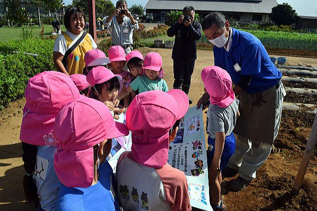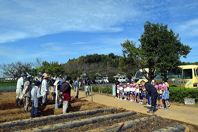 農村公園での最後の活動、10月8日さつまいも掘りの日。 これまでお世話になった、おじさんやおばさんに「ありがとう」を伝えました。 |
