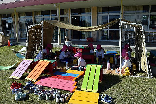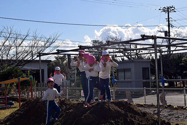 遊びや生活の中で、「みんなで」という言葉がますます増え、 同じ目的に向かって考えたり、工夫したりする姿が見られています。 子ども達の「いきいき」「のびのび」とした表情に、誇らしさを感じています。 |