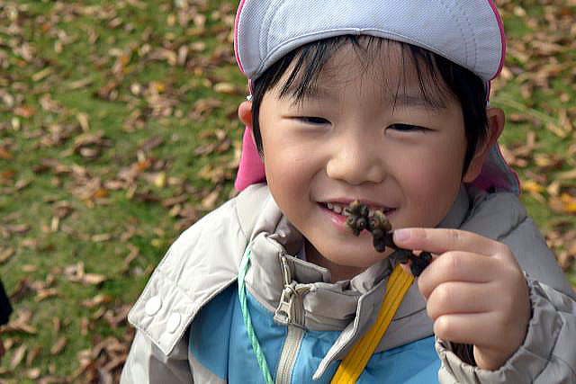 | どんぐりをたくさん集めて、次はお弁当? その前に競争だ!!! |