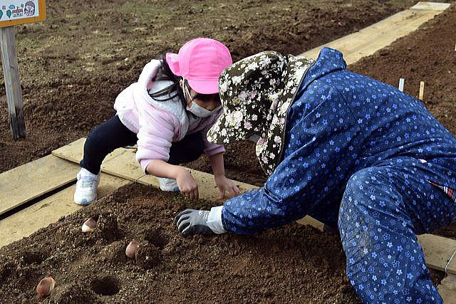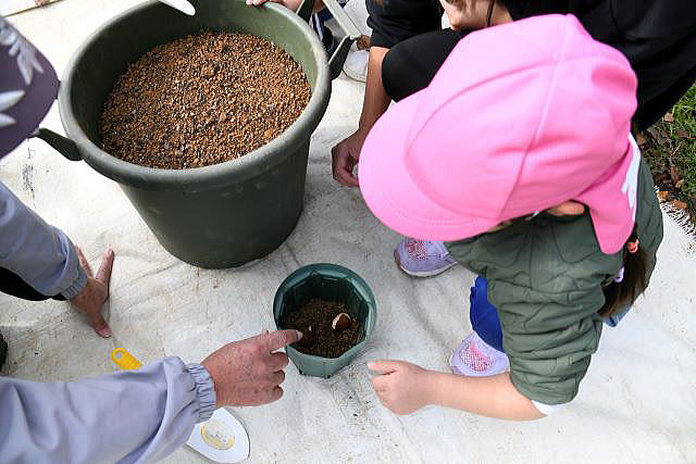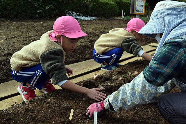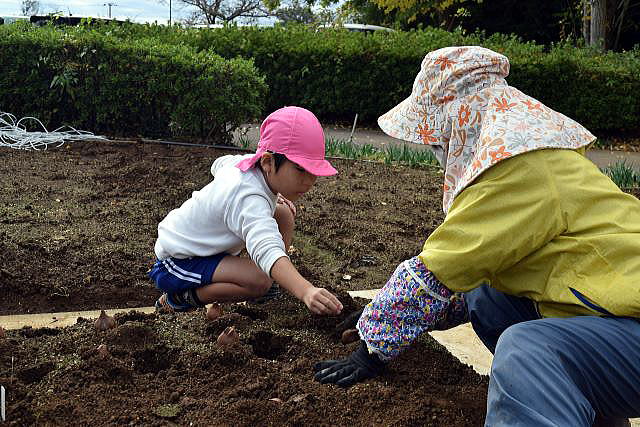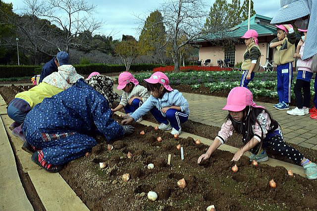 | 11月11日 袖ケ浦公園にて、ちゅうりっぷの球根植えです。 毎年、袖ケ浦公園の花のテラスにちゅうりっぷの球根を植えています。 公園管理事務所の方々が、ひとり一人に丁寧に教えてくださいます。 |