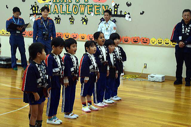 | 10月16日 火の用心のお約束「幼年消防クラブ大会」 火災を想定した「避難訓練」 |