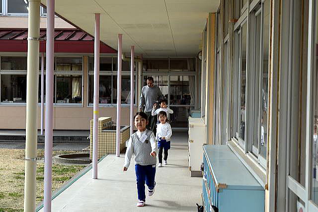 | 最後の「英語で遊ぼう」の時間です。 いつもその日のお当番さんが、職員室までALTの先生をお迎えに行きます。 |