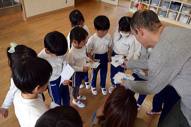 | 歌や遊びを通して英語に親しみ、外国語への興味や コミュニケーションの楽しさを育むことができました。 みんなALTの先生が大好き! 外で一緒に遊んだり、絵本の読み聞かせをしてくれたり、 英語に親しむことができました。 これまでの感謝の気持ちを伝えました。 ありがとうございました。 |