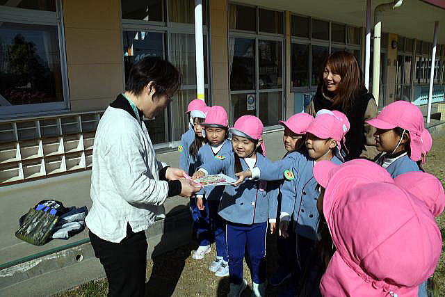 | 交通指導員の大野さんに「ありがとう」を伝えたい。 みんなは中川幼稚園の代表です。 今まで長い間、中川幼稚園の子ども達のためにありがとうございました。 |