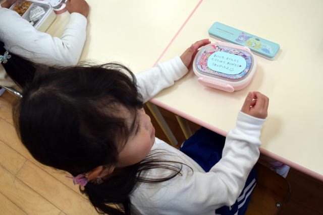 二年間、毎日心を込めてお弁当を作ってくださりありがとうございました。 食べてくれない日や好き嫌いに悩まされることもあったと思いますが、 毎朝小さなお弁当箱にたくさんの愛情を詰めて 送り出して下さった事に、心より感謝いたします。 その積み重ねが、子ども達の健やかな成長と 元気に過ごす力に繋がりました。 本当にありがとうございました。 |