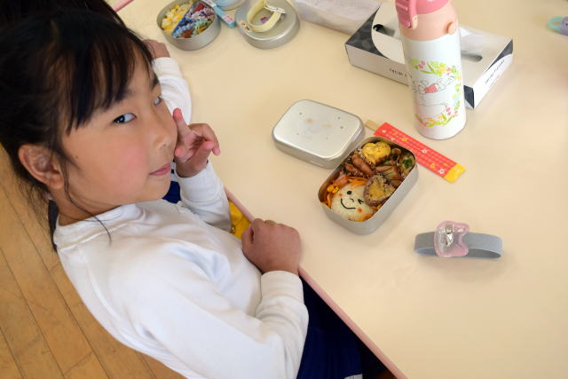 | いよいよ今日が最後のお弁当です。 二年間毎日、お家の人の手作りお弁当でした。 今日は感謝の気持ちを込めて、「いただきます!」 |